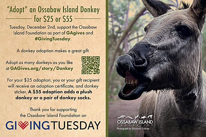 Support the Ossabaw Island Foundation by "Adopting an Ossabaw Island Donkey" for $25 .