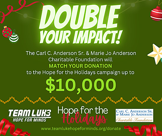 With our growth comes awareness and an opportunity to help more families each year. Starting today, Dec. 5, Team Luke Hope for Minds is launching our annual Hope for Holidays campaign to raise additional funds for the increasing number of applications we are receiving. This year, we have had a record number of families apply for financial support. Unfortunately, we have not had the funds to approve the increasing number of applications we are receiving, and we need your help. Currently, we have 27 families in need of more than $97,000 in financial support to fund therapies, treatments, adaptive equipment, educational services and more.