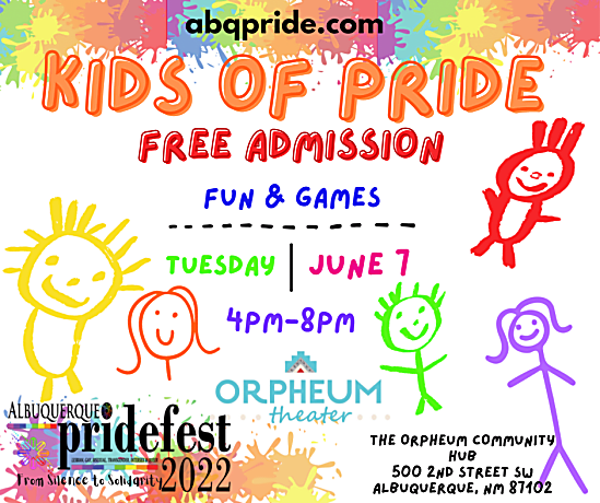 Join us for our first annual Kids of Pride, June 7th, 2022 at 4pm at The Orpheum Community Hub.