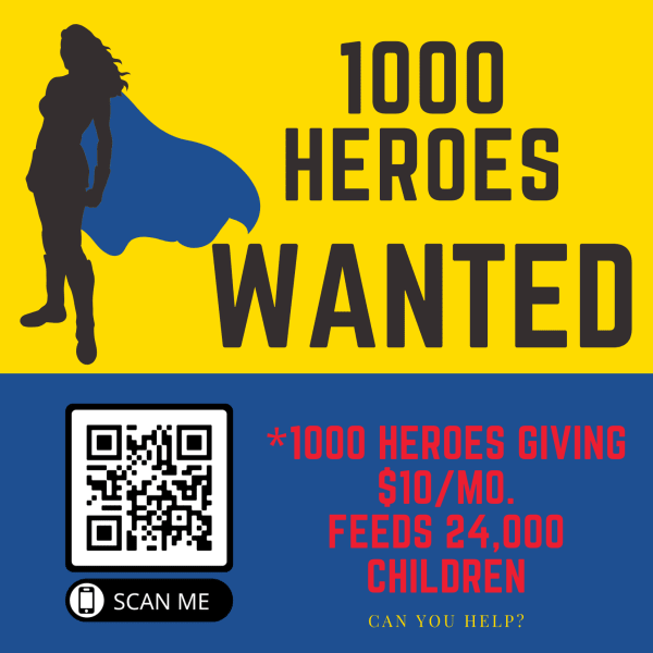 If we can rally 1000 BF believers to give $10 each month, we'll be able to spend $120,000 on food items for children in need. And because of our bulk purchasing power, that money will fill more than 24,000 backpacks of food in 2024!