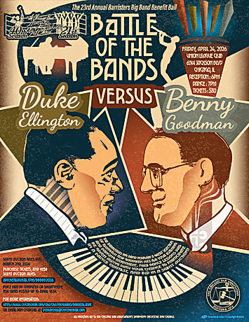From 6:00 pm to 7:00 pm, your $80 ticket buys you access to the open bar, and it is a great time to enjoy the company of other guests and check out the silent auction. At 7:00 pm two things happen: (1) The full 25-piece Barristers Big Band takes the stage, and (2) the food comes out. Yum! Shortly into the first set, professional dancers do a dance demo. Then, they teach a group dance lesson for everyone. Never danced before? You will learn what you need to get up and move to the music. Later in the evening there is a dance contest with giant trophies for the 1st Place winners and recordings of the BBB for 1st, 2nd, and 3rd place winners. The music keeps on playing until about 10 pm.