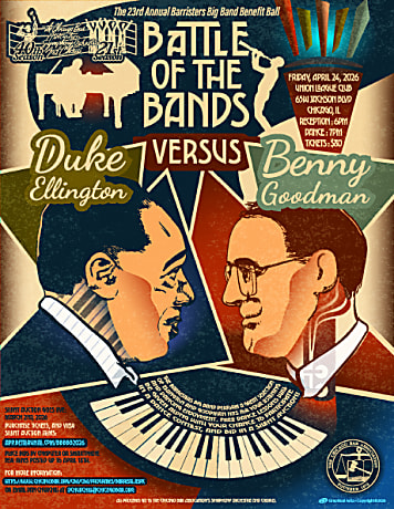 If you have been, you already know. But for those who have never been, here’s what the evening looks like. First, the location is in beautiful Lincoln Ballroom at the Union League Club in downtown Chicago. VERY elegant. At 6:00 pm, the doors open, and the CBA’s Scales of Justice, its small jazz group, is onstage making music. Either before or when you enter, you register for the silent auction that has all kinds of goodies. There are fun physical things to look at on tables around the room, but the silent auction actually runs on your phone. You can register now (so you can bid). Click on the "Register" button. Auction items will be posted starting in early March.