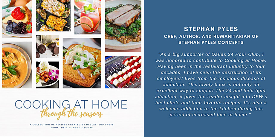 We are pleased to announce that Dallas 24 Hour Club will produce a brand new 2021 edition of Cooking at Home Through the Seasons: A Collection of Recipes Created by Dallas’ Top Chefs From Their Homes to Yours. The Cookbook will feature favorite seasonal recipes from new and returning celebrity chefs, along with inspirational messages of hope and recovery, which highlight our mission since 1969 to provide safe, sober transitional living for homeless men and women seeking a brand new life away from drugs and alcohol.
