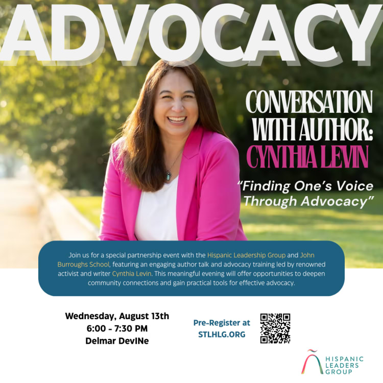 Cynthia is a keynote speaker for groups such as PTA, United Nations Association, and Girl Scouts. She speaks on podcasts and at local St. Louis institutions such as St. Louis University, Webster University, John Burroughs School (middle and high school students), Congregation B’nai Amoona, and Parkway United Church of Christ. She remotely appears on national volunteer webinars as a coach for advocacy groups like RESULTS.