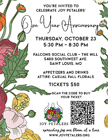 Join us as we celebrate JOY Petalers’ first year of spreading joy through flowers! Every dollar raised through this event will go directly back into JOY Petalers’ mission—no salaries, upcycled flowers, volunteers, and joy delivered to those who need it most.