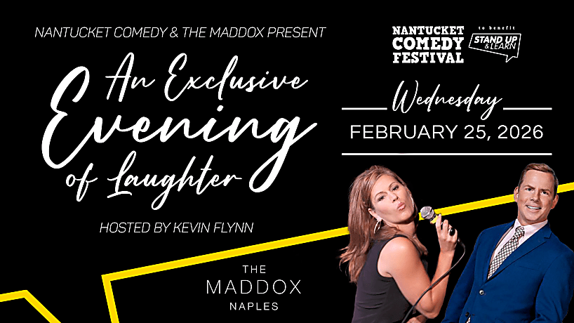 The Nantucket Comedy Festival returns to The Maddox in Naples for an evening of cocktails, community, and world-class comedy. Hosted by Kevin Flynn and featuring Tom Cotter and Kerri Louise, the second annual benefit serves to elevate awareness for Stand Up & Learn and offers attendees exclusive Patron Pass discounts that meaningfully support the program.