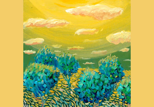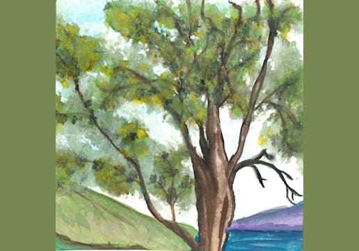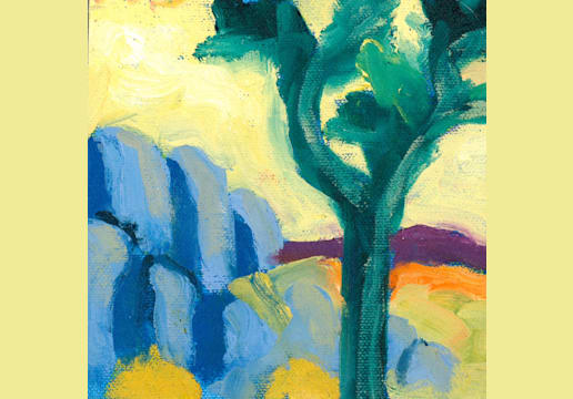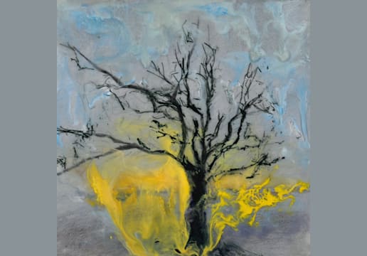 117 Blue Tree Lady on Yellow
