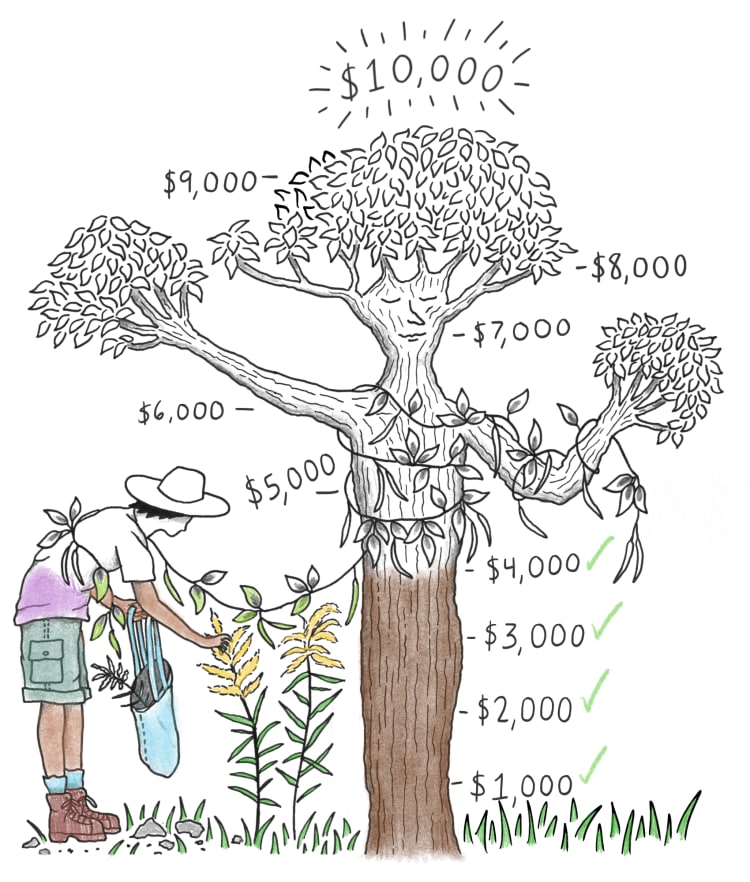 Let's bring our tree and forager to life! This drawing will be filled in with color as we make our way to our $10,000 goal this fall.
