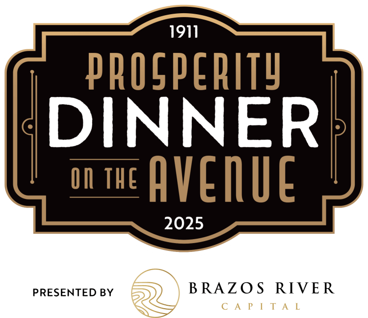 Drawing inspiration from Waco’s 1911 Prosperity Banquet, the 2025 Prosperity Dinner on the Avenue, presented by Brazos River Capital, is an elegant outdoor dining experience. More importantly, it is a signature fundraiser that will pay tribute to Prosper Waco's 10th Anniversary while laying the groundwork for the decade ahead. Join us on Sunday, October 19, 2025, in Downtown Waco on Austin Avenue. We will start with cocktails at 6 pm and dinner at 7 pm.