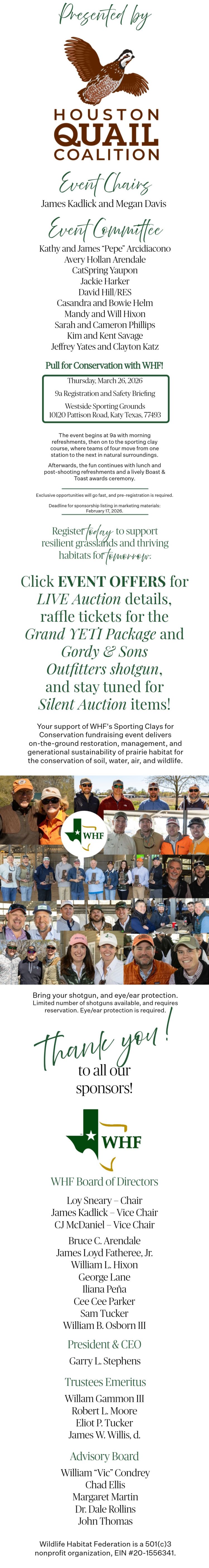 The Ammo/Clays Sponsor level is a non-shooting package that includes: